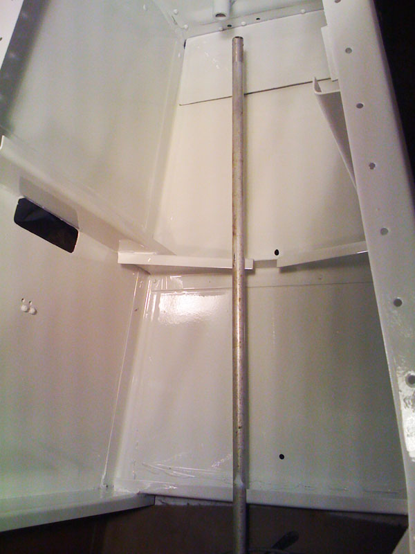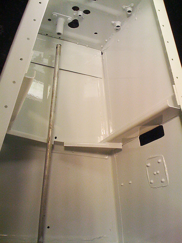 The empennage was etched, primed, and painted with Imron.  Painting in the corners was fun.