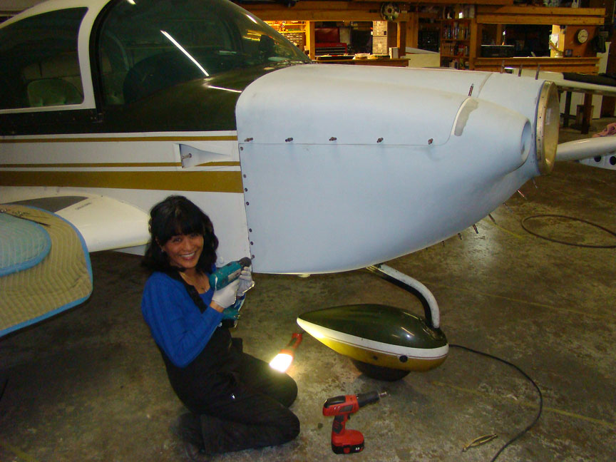 Here is my better half working on the baffles and helping me fit the cowling.